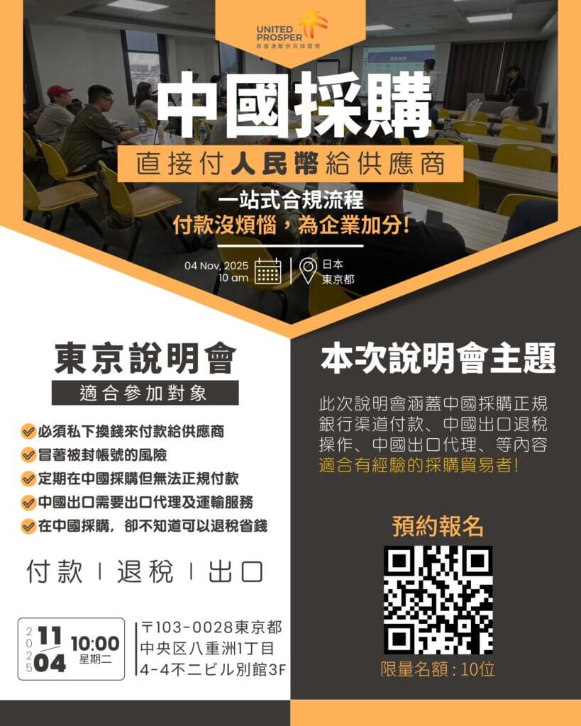 尋求正規付款途徑、有退稅及出口代理服務需求,歡迎報名!